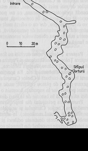 Pestera mijlocie (170 m), orizontala, fosila, alcatuita din galerii pe traiectul carora se afla mici dilatari (salite).